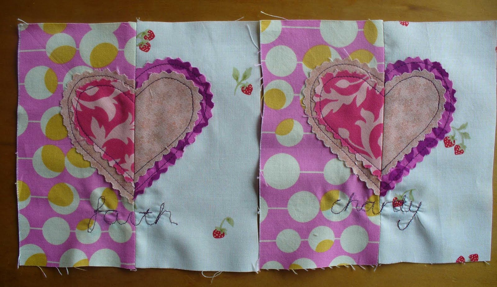The heart is offset towards the to of the block - leaving an ideal space to stitch some extra details such as a signature.