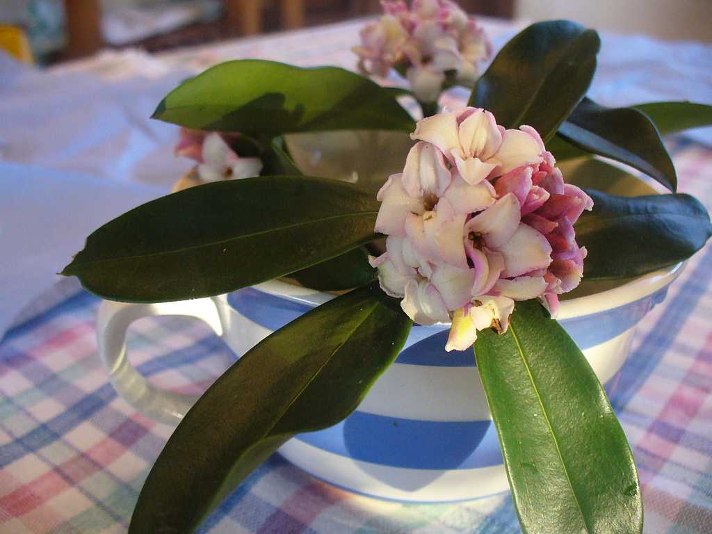 It is nice to be reminded of what artificial air freshners* are aspiring to. Unsuspecting window sills in those functional rooms of the house, now sport their own little tea cups of lemony daphne.