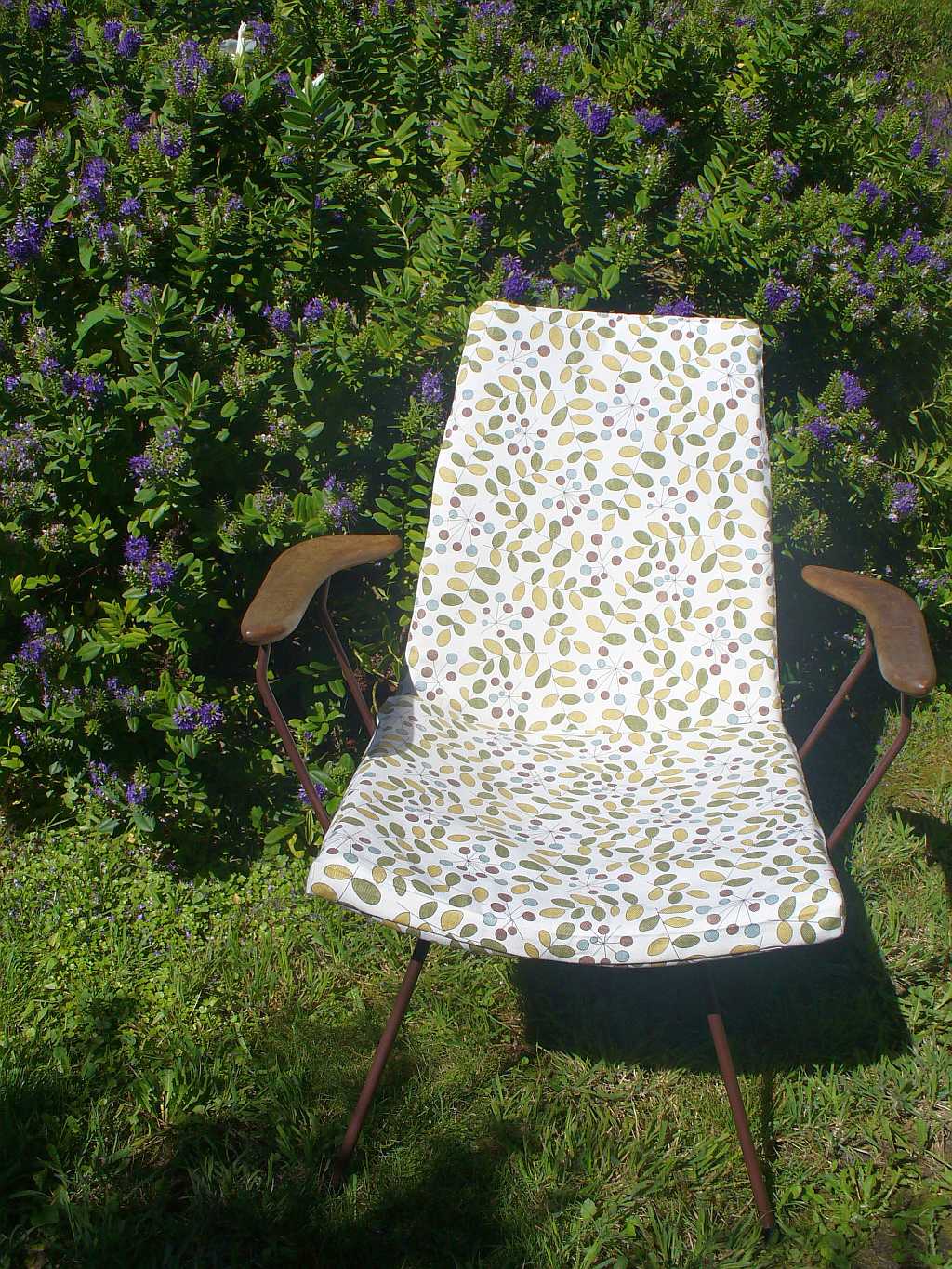 When I first picked up the chair, I was tempted to remove the cushions and leave it as is, for a homage to Eames look. However as these chairs reach the end the their lives, the wires come a little loose and have a tendancy to try and pinch your summery legs. It was either pick up the welding gear or the sewing machine.After - chair ready to go