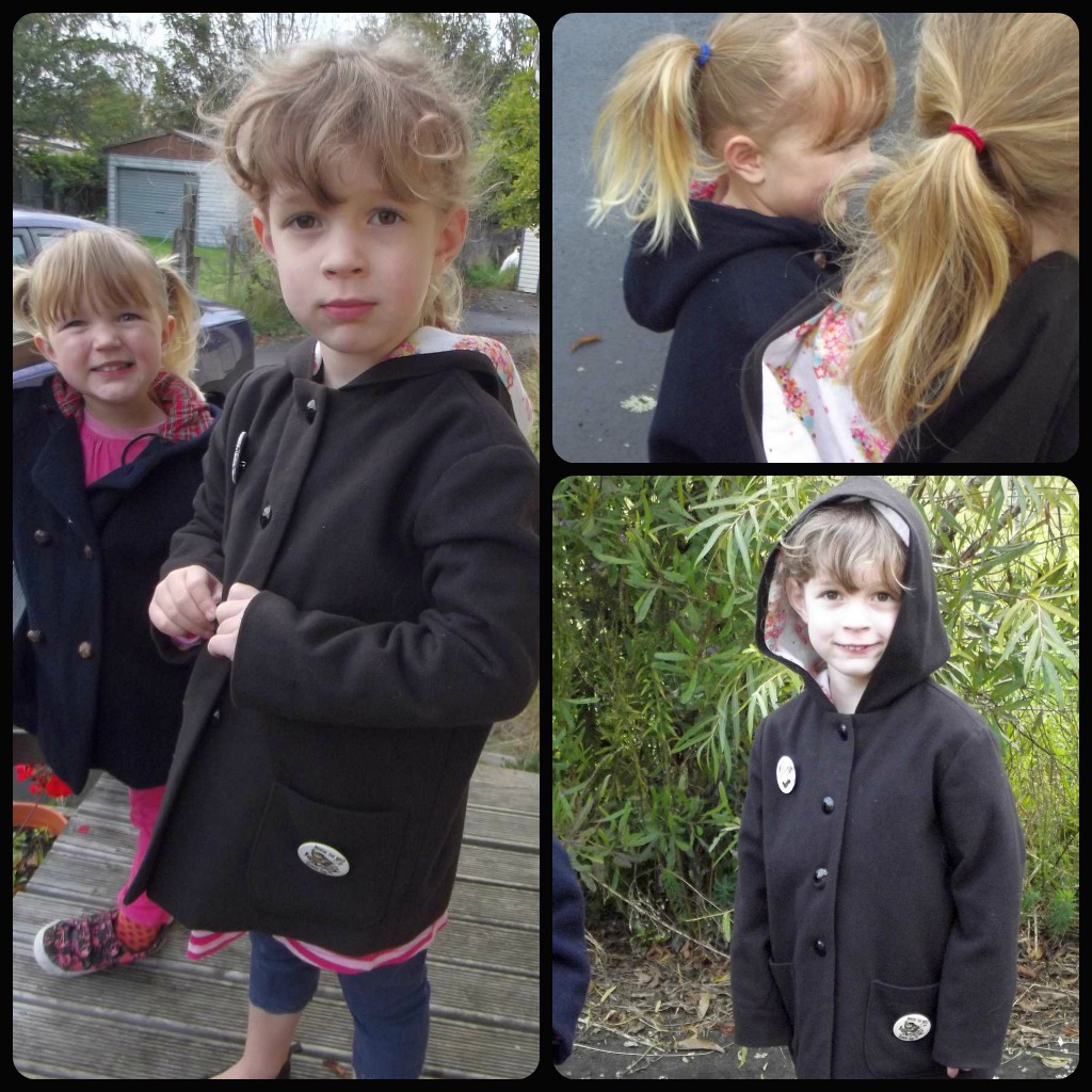 Little E is loving this coat, complete with it's non-regulation floral brushed cotton lining and shiny buttons*. We are still three weeks out from school, so the little badges are staying on the coat too, if only for a few weeks more.