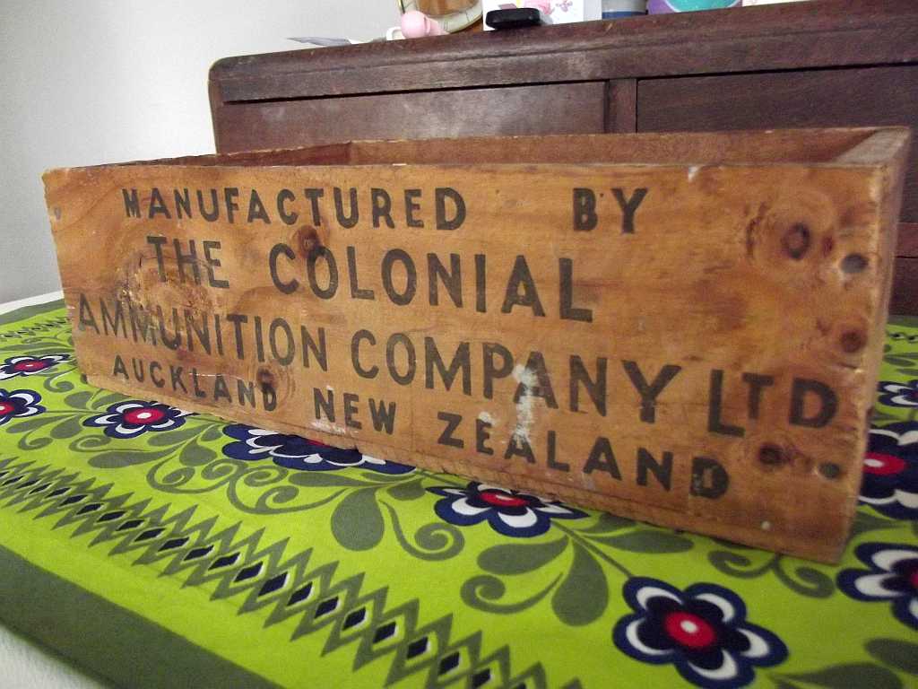 I am a sucker for wooden boxes. I especially love the ones with printed labels, emblazoned with a purpose. This one was holding up the heater behind the counter of the opp shop this week. After a few cheeky questions, it turned out to be for sale, and left the shop tightly tucked under my arm. While I have no immediate need for an ammunition box, after some careful thought I knew exactly what needed to go in it. A friend passed me a cardboard box of colours with names. As well as the confectionery of names, I love the jumble of shapes and sizes, just right in their new home*.