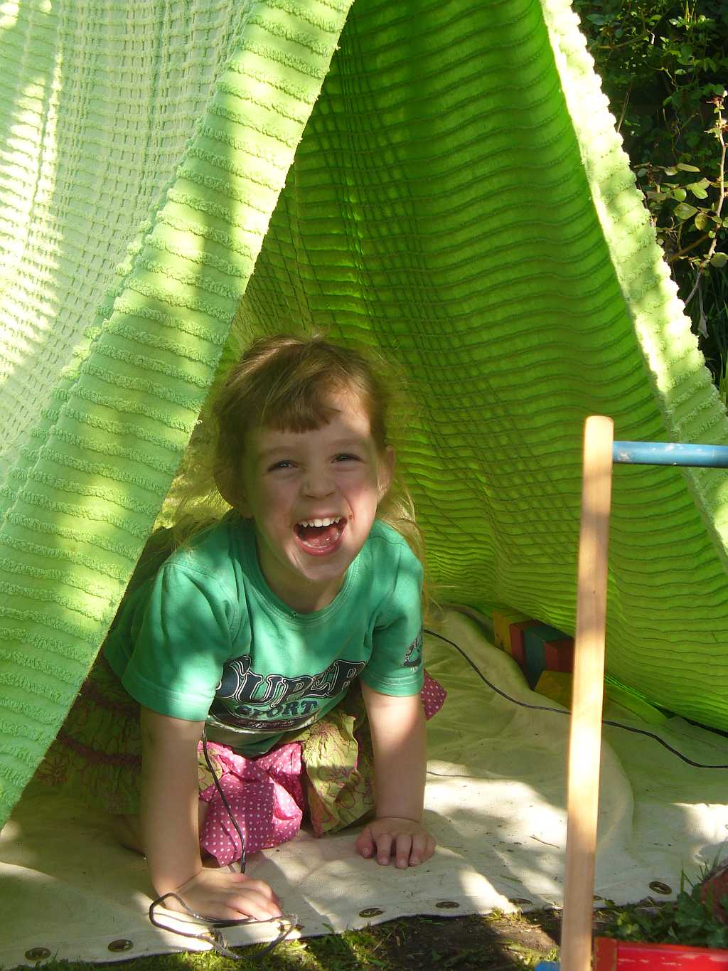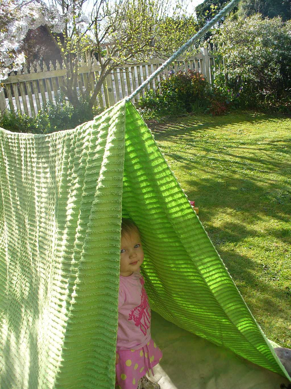 We went camping with some sunlight, string, a bedspread and a touch of imagination.