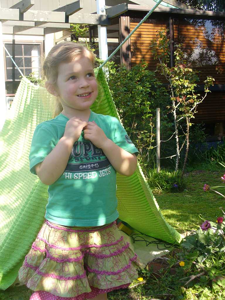 Miss H and I had a day together. Just the two of us, while the big kids went to the movies . We explored the garden. It seems that no matter what happens to the vegetable patch, there's always rhubarb and crumble to be had*. We admired the long grass and the way it feels between toes. We checked up on the bulbs that Grandma planted with the girls while I was away. It was just the right sort of weather for indulgent single child kind of time.